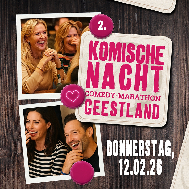Sechs Spielorte, ein Abend voller Humor – und bei uns erleben Sie die Komische Nacht in einem besonders stimmungsvollen Rahmen. Der Saal bietet Nähe zur Bühne und eine Atmosphäre, die den Auftritten eine besondere Intensität verleiht.