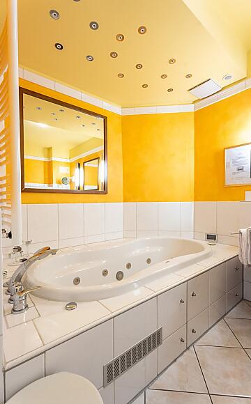 Das Zimmer verfügt über einen Balkon, ein Bad mit Dusche und Whirlpool, große Fensterfront und großzügigem Südbalkon, begehbarem Kleiderschrank, individuelle Klimatisierung, Haartrockner, Schminkspiegel, flauschigem Bademantel und Frottee-Schuhen sowie Fernseher, digitaler Gästemappe und Safe.
