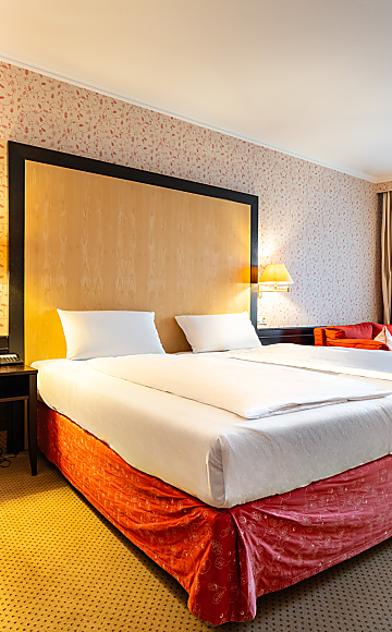 Das Zimmer verfügt über einen Balkon, ein Bad mit Dusche bzw. Badewanne (nach Verfügbarkeit), Haartrockner, Schminkspiegel, flauschigem Bademantel und Frottee-Schuhen sowie Fernseher, digitaler Gästemappe und Safe.