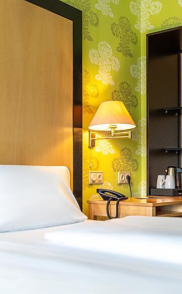 The room has a balcony, a bathroom with shower or bathtub (subject to availability), hairdryer, make-up mirror, fluffy bathrobe and terrycloth slippers as well as a TV, digital guest folder and safe.