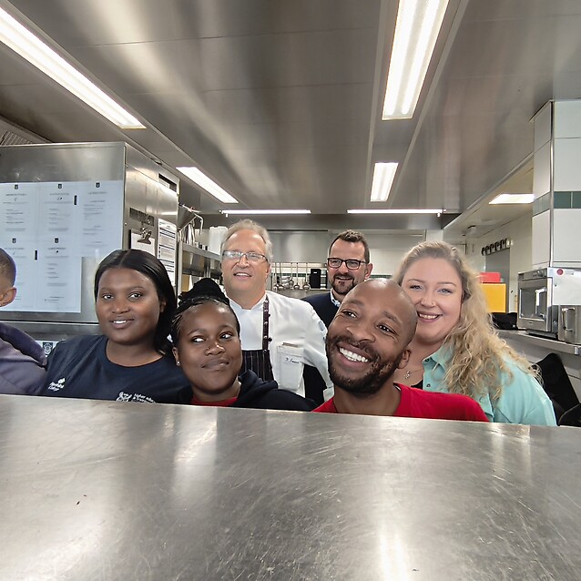 This year, the exchange continued in the other direction: two young women from Africa joined us through the same program to discover German cuisine. Our kitchen team, led by Ralf Sommer, gave them a warm welcome and integrated them into the daily kitchen routine from day one.