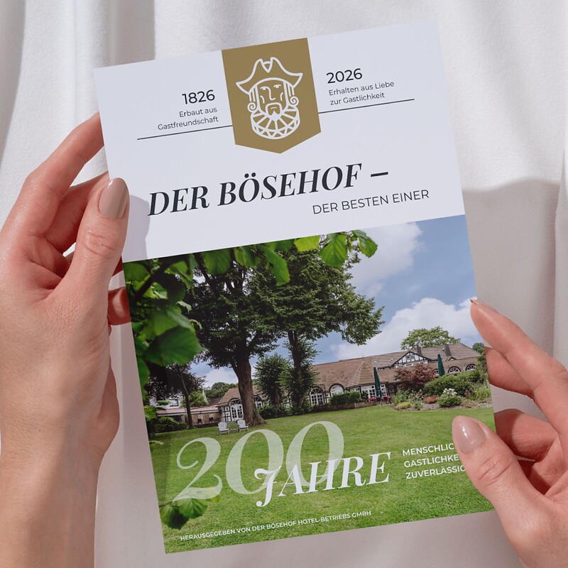 This year, we are celebrating a very special anniversary: 200 years of Bösehof. Since 1826, our house has been a place of hospitality, exchange and well-being — shaped by tradition, inspired by people, and deeply rooted in Bad Bederkesa and the region.
